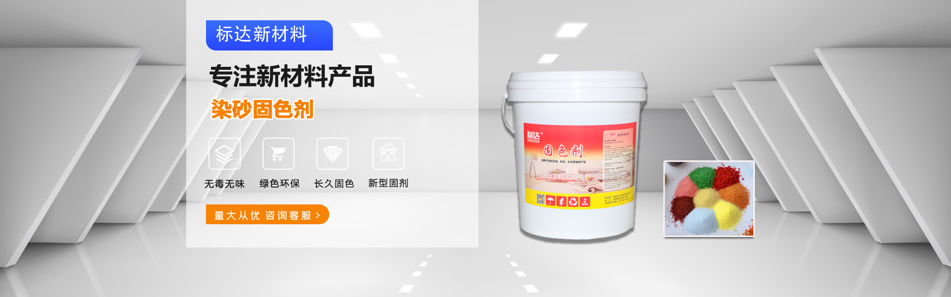 固色劑說明書 標達固色劑(建材類)適用于各類彩砂,彩磚,彩瓦等產品。產品說明:1本產品無毒,無味,外觀乳白色液體。本產品采用無機納米材料構成,以達到超強滲透,于被染材料固為一體。2本產品僅為固色材料,與被染材料色相要求無關,客戶可 [詳細內容]